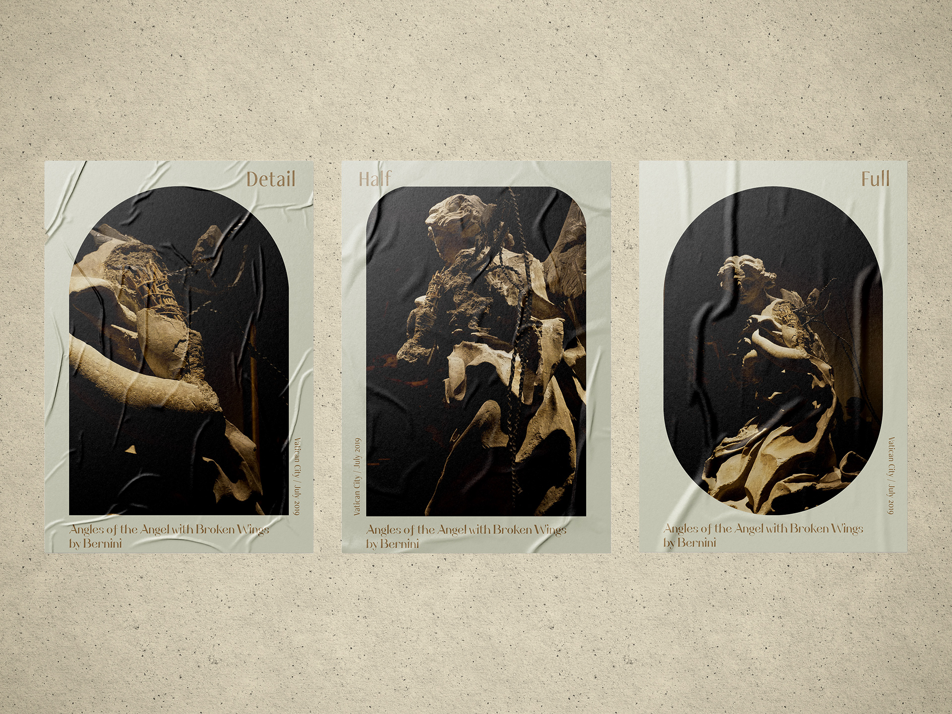This is a poster series consisting of photos I took of a statue by Bernini in the Vatican in Rome. I wanted the series to focus on the different angles of the sculpture as well as its decay due to age.